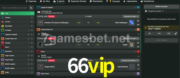 O 66vip oferece uma grande seleção de opções de apostas em e-sports com probabilidades competitivas